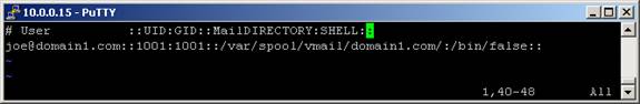 [email protected]::1001:1001::/var/spool/vmail/domain1.com/:/bin/false::