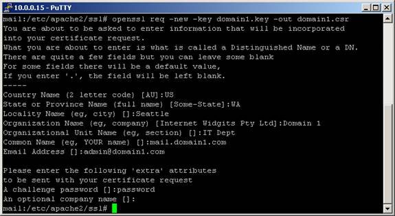 Now that we have the required certificate and key we can start configuring Apache to server up Squirrelmail protected by SSL! We’ll first need to enable the SSL modules. Complete the following commands: